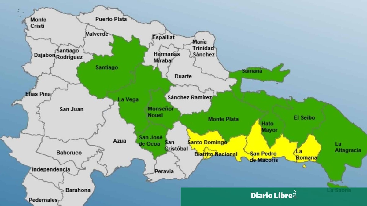 El COE mantiene alerta amarilla para las provincias Distrito Nacional, Santo Domingo, La Romana y San Pedro de Macorís. En alerta verde permanecen Monte Plata, Hato Mayor, La Vega, El Seibo, La Altagracia, Samaná, Santiago, Monseñor Nouel y San José de Ocoa.