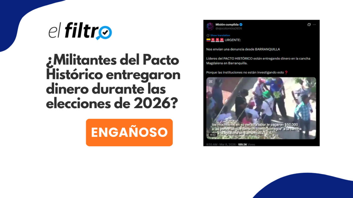 Un video que ha circulado en redes sociales, mostrando a varios hombres repartiendo billetes mientras visten camisetas del Pacto Histórico, ha generado confusión sobre su fecha y contexto. Aunque se ha difundido como relacionado con las elecciones legislativas de 2026, la grabación data en realidad del 7 de marzo de 2022, durante el cierre de campaña presidencial de Gustavo Petro en Barranquilla.